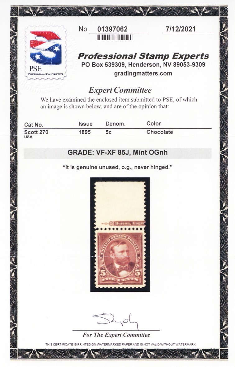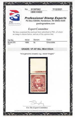 270, Mint VF/XF NH 5¢ With Graded 85J JUMBO PSE Certificate - Stuart Katz