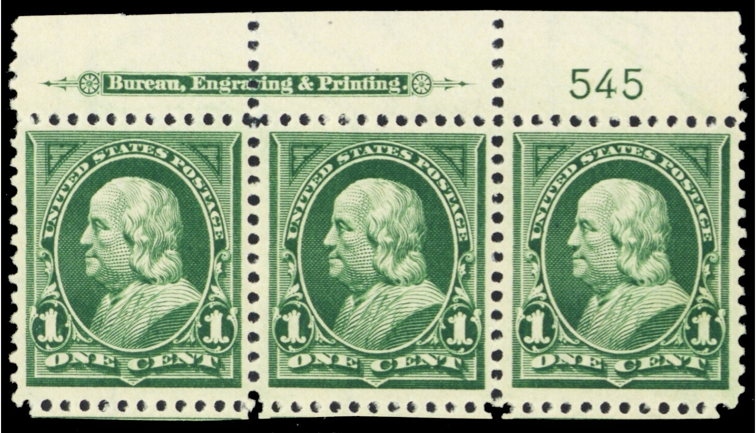 279, Mint NH PL# Strip of Three Stamps CV $85+ *------* Stuart Katz