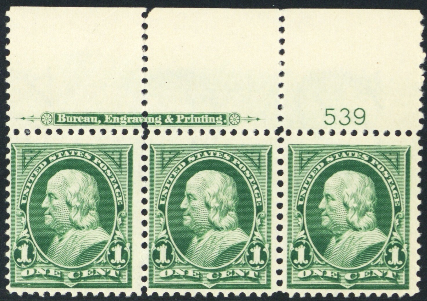 279, Mint NH PL# Strip of Three Stamps CV $85+ -* Stuart Katz
