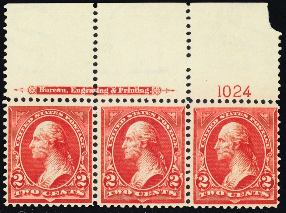 279B, Mint NH 2¢ PL# & Imprint Strip SCV $85.00 ** Stuart Katz