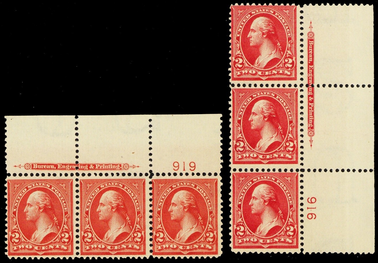 279B, Mint NH 2¢ Two PL# & Imprint Strips of 3 - Stuart Katz