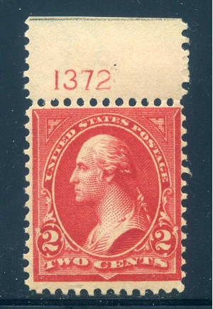 279B with plate number, 2¢ Washington, Mint NH (hinged on selvage), Scott $30