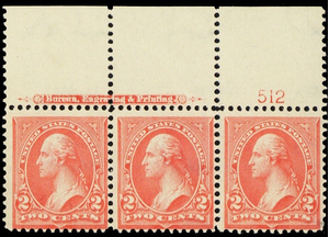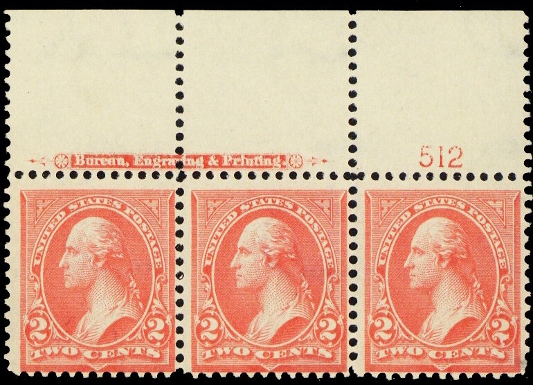 279Bg, Mint NH 2¢ PINK SHADE PL# & Imprint Strip of 3 - Stuart Katz