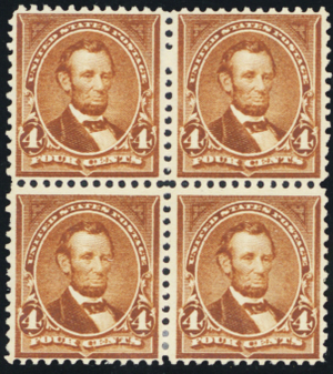 280, Mint NH/LH 4¢ VF Block of Four Stamps SCV $220 - Stuart Katz