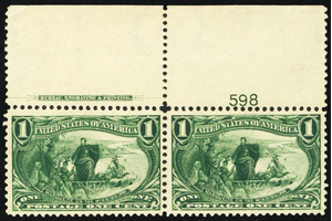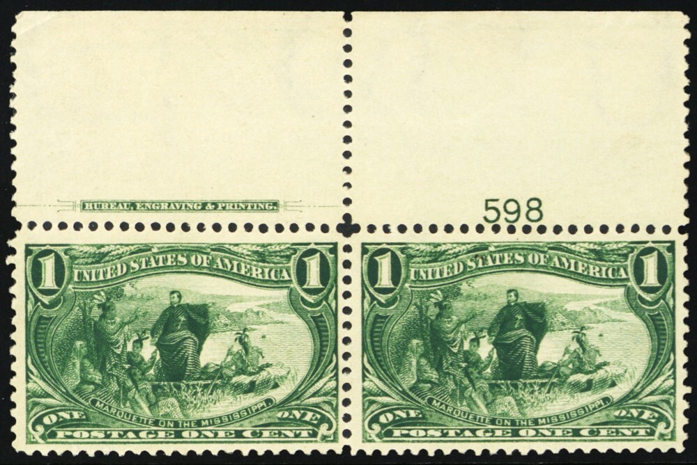 285, Mint VF NH Top Imprint & PL# Pair - Stuart Katz