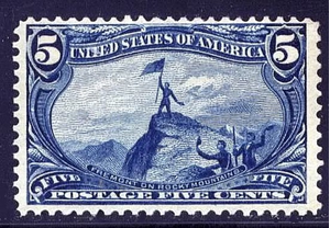 Scott# 288 F-VF MNH OG 5 cent Trans-Mississippi commemorative depicting "Fremont on the Rocky Mountains". Very fresh stamp with deep blue color and sharp proof-like impression. Nice looking Trans-Mississippi stamps are really getting tough to find so don't wait too long to buy great stamps from this classic series since the prices are really moving up. Scott catalog value: $350.00. This stamp will be a great addition to your collection.