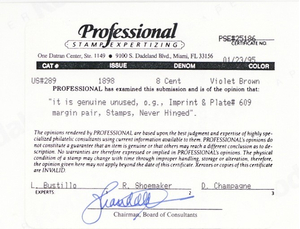 289, Mint VF NH 8¢ Imprint Copy - With PSE Certificate - Stuart Katz