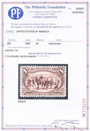 289, Mint VF/XF NH 8¢ - With PFC Certificate - Stuart Katz