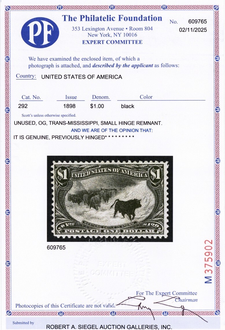 292, Mint VF OG $1 Cattle In Storm With 2025 PFC Certificate - Stuart Katz