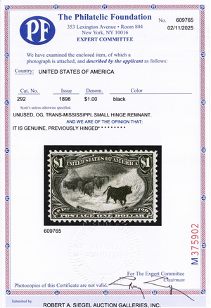 No refunds will be made after 60 days after the sale date unless extra time is granted. Due to the high cost of obtaining certificates we will only refund the cost of the stamp and not the cost of the certificate. For U.S. stamps only certificates from either APS, PSE or from the Philatelic Foundation are accepted, however "graded" certificates or "encased" items are not accepted.
