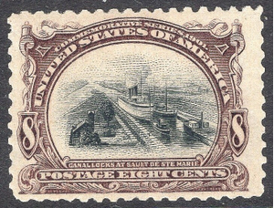 | #298 F-VF MNH OG-8¢ Pan-American Series BEAUTY!! Scott# 298 F-VF MNH OG 8¢ issue from the Pan-American series depicting "Canal Locks at Sault De Ste Marie ". A real beauty for an issue that is hard to find well centered.