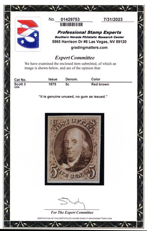 3, Unused 5¢ XF GEM With Four Nice Margins All around With PSE Cert Stuart Katz