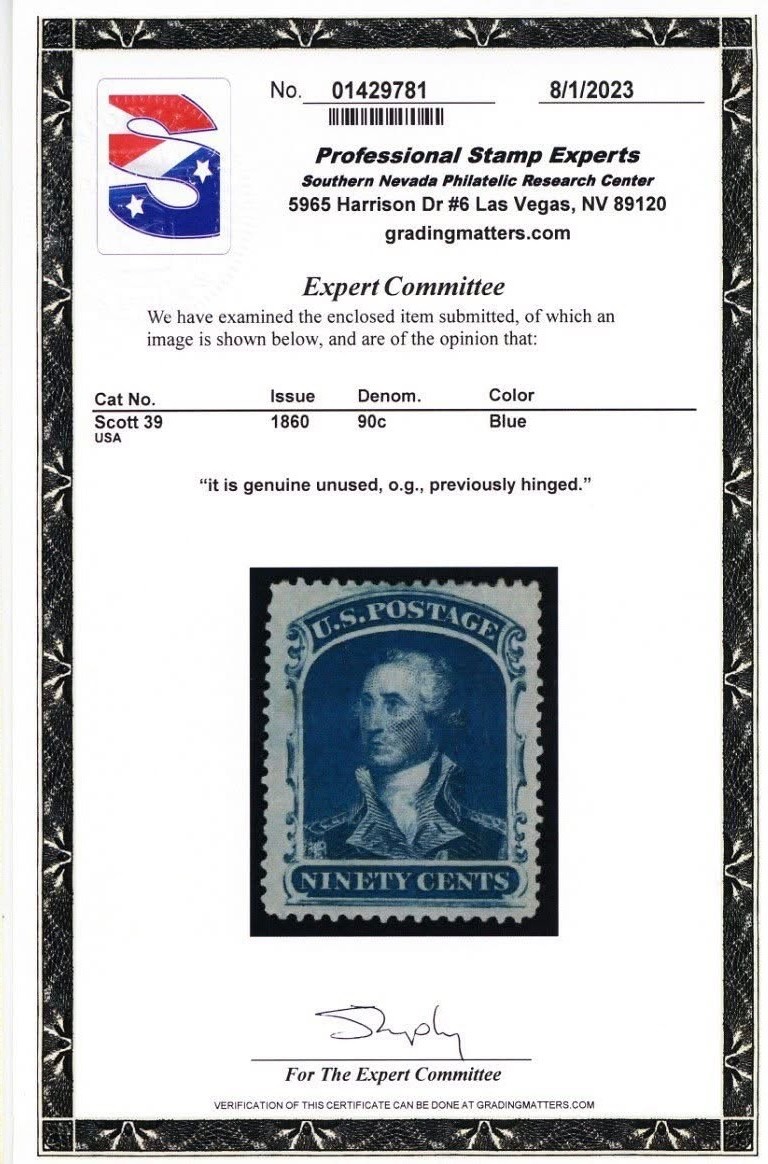 39, Mint XF XLH 90¢ A GEM With PSE Certificate - Stuart Katz