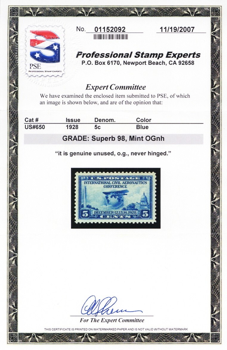 650, Mint Superb NH 5¢ - Graded 98 PSE Certificate - Stuart Katz