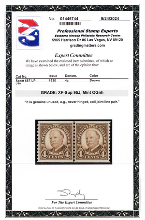 687, Mint XF/Superb NH 4¢ Line Pair - Graded 95J JUMBO PSE Cert - Stuart Katz