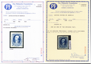 No refunds will be made after 60 days after the sale date unless extra time is granted. Due to the high cost of obtaining certificates we will only refund the cost of the stamp and not the cost of the certificate. For U.S. stamps only certificates from either APS, PSE or from the Philatelic Foundation are accepted, however "graded" certificates or "encased" items are not accepted.