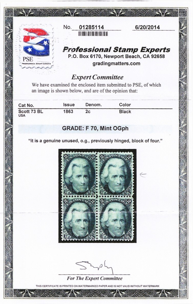 73, Mint LH 2¢ With Graded PSE Certificate - Stuart Katz