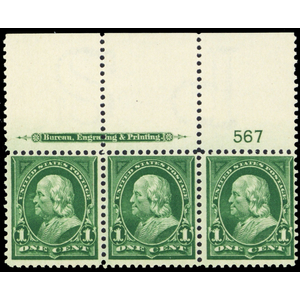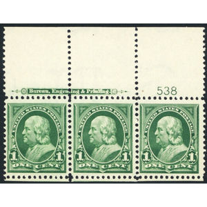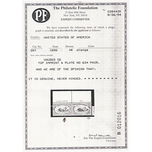 285, Mint 1¢ VF/XF Top PL# & Imprint Pair - Beautiful! - Stuart Katz