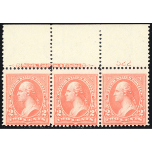 267, PINK SHADE Mint NH 2¢ PL# & Imprint Strip SCV $200.00 - Stuart Katz