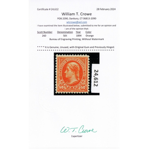 260, Mint LH XF 50¢ Perry With Certificate * Stuart Katz