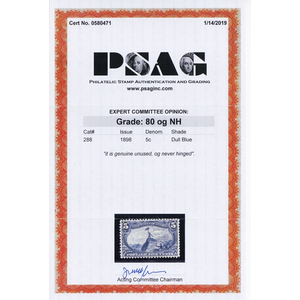 288, Mint NH VF 5¢ - With PSAG Certificate * Stuart Katz