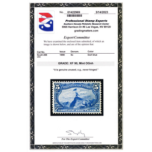288, Mint XF NH 5¢- With Graded 90 PSE Certificate * Stuart Katz