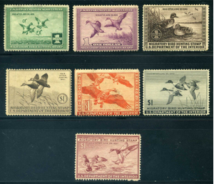 RW4-7, RW11-13, Group of Mint Hinged Duck Stamps, faults, Scott $710