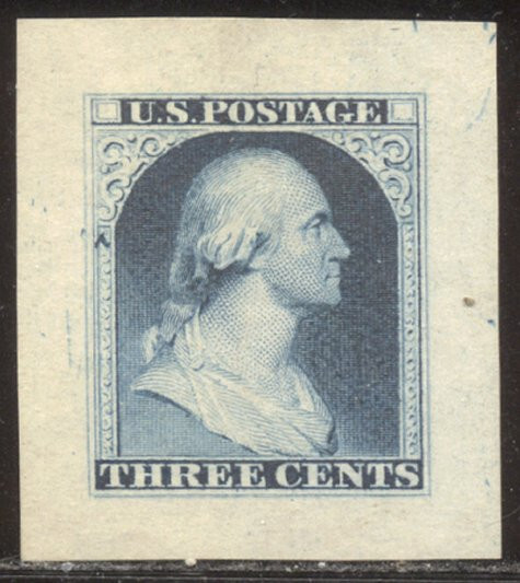 Scott #11-E4c: 3c Washington, Blue Centering & Condition: Very Fine and SCARCE Essay. Reverse (Gum Side): N/A Faults / Imperfections: None The item pictured is the actual item you are purchasing, unless otherwise noted. I also offer an interest-free layaway plan. Ask me about it!" All items purchased will be mailed a day or two after payment is received. --------------------------------------------------------------------------------