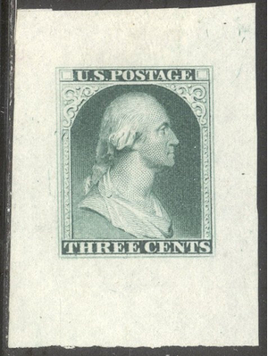 Scott #11-E4e: 3c Washington, Green Centering & Condition: Very Fine and SCARCE Essay. Reverse (Gum Side): N/A Faults / Imperfections: None The item pictured is the actual item you are purchasing, unless otherwise noted. I also offer an interest-free layaway plan. Ask me about it!" All items purchased will be mailed a day or two after payment is received. --------------------------------------------------------------------------------