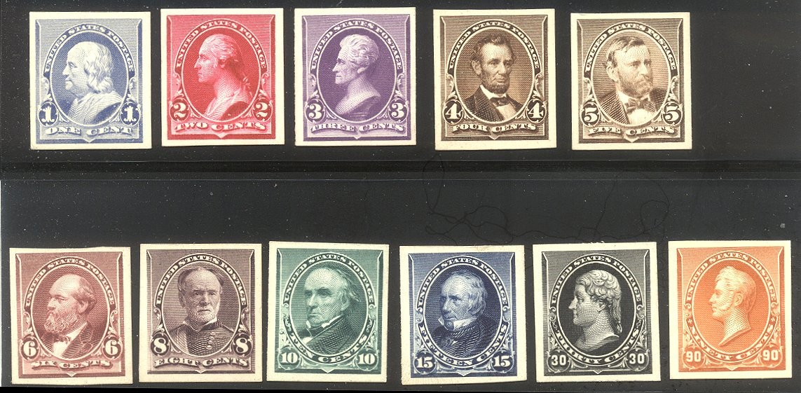 Scott #219-29P4 (missing #219DP4): 1890 Portraits Set Centering & Condition: Mint. Fresh. Very Fine set with Sparkling colors. Reverse (Gum Side): Clean Faults / Imperfections: None The item pictured is the actual item you are purchasing, unless otherwise noted. I also offer an interest-free layaway plan. Ask me about it!" All items will be mailed a day or two after payment is received. --------------------------------------------------------------------------------