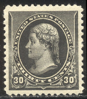 Scott #228: 1890 30c Black Centering & Condition: Mint. Fresh. Rich color. XF/SUP JUMBO GEM. Stunning! Reverse (Gum Side): Original gum. Hinged. Faults / Imperfections: None The item pictured is the actual item you are purchasing, unless otherwise noted. I also offer an interest-free layaway plan. Ask me about it!" All items will be mailed a day or two after payment is received. --------------------------------------------------------------------------------