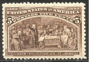 Scott #234: 1893 5c Columbian Centering & Condition: Mint. Fresh. Very Fine. Reverse (Gum Side): Original gum. Never Hinged. Faults / Imperfections: None The item pictured is the actual item you are purchasing, unless otherwise noted. I also offer an interest-free layaway plan. Ask me about it!" All items purchased will be mailed a day or two after payment is received. -------------------------------------------------------------------------------- Please click any of the following to read: | |