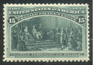 Scott #238: 1893 15c Columbian Centering & Condition: Mint. Fresh. Rich color. Very Fine. A Foundation certificate accompanies. Reverse (Gum Side): Original gum. Never Hinged. Faults / Imperfections: None The item pictured is the actual item you are purchasing, unless otherwise noted. I also offer an interest-free layaway plan. Ask me about it!" All items purchased will be mailed a day or two after payment is received. --------------------------------------------------------------------------------