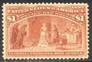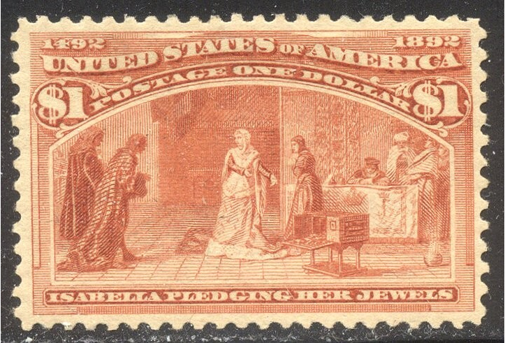 Scott #241: 1893 $1.00 Columbian Centering & Condition: Mint. Fresh. Rich color. Very Fine. Reverse (Gum Side): Original gum. Hinged. Faults / Imperfections: None The item pictured is the actual item you are purchasing, unless otherwise noted. I also offer an interest-free layaway plan. Ask me about it!" All items purchased will be mailed a day or two after payment is received. --------------------------------------------------------------------------------