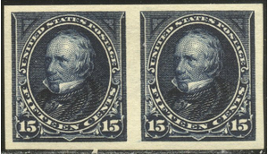 Scott #274P5: 1895 15c Indigo, Plate Proof on Stamp Paper Centering & Condition: Mint. Fresh. Rich color. Extremely Fine and CHOICE Pair. Reverse (Gum Side): Original gum. Faintly Hinged. Faults / Imperfections: None The item pictured is the actual item you are purchasing, unless otherwise noted. I also offer an interest-free layaway plan. Ask me about it!" All items will be mailed a day or two after payment is received. --------------------------------------------------------------------------------