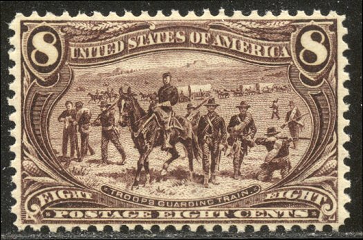 Scott #289: 1898 8c Trans-Mississippi Centering & Condition: Mint. Fresh. Rich color. Very Fine. Reverse (Gum Side): Original gum. Never Hinged. Faults / Imperfections: None The item pictured is the actual item you are purchasing, unless otherwise noted. I also offer an interest-free layaway plan. Ask me about it!" All items purchased will be mailed a day or two after payment is received. --------------------------------------------------------------------------------