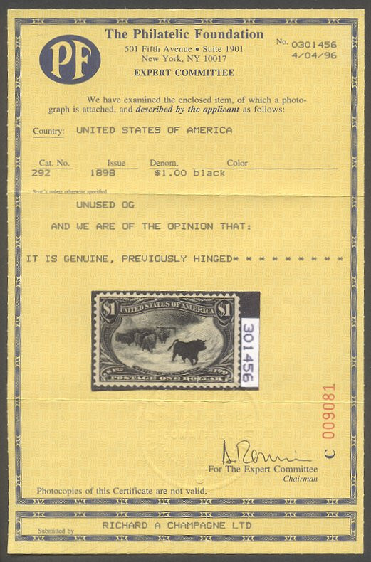 Scott #292: 1898 $1 Trans-Mississippi Centering & Condition: Mint. Fresh. Rich color. Very Fine and CHOICE. Reverse (Gum Side): Original gum. Lightly Hinged. Faults / Imperfections: None The item pictured is the actual item you are purchasing, unless otherwise noted. I also offer an interest-free layaway plan. Ask me about it!" All items will be mailed a day or two after payment is received. --------------------------------------------------------------------------------