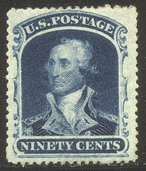 Scott #39: 90c Blue Centering & Condition: Mint. Fresh. Rich color. Very Fine and CHOICE for this issue. Reverse (Gum Side): Original gum. Hinged. Faults / Imperfections: Small, light gum crease at right mentioned for accuracy The item pictured is the actual item you are purchasing, unless otherwise noted. I also offer an interest-free layaway plan. Ask me about it!" All items purchased will be mailed a day or two after payment is received. --------------------------------------------------------------------------------