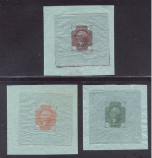 Scott #69-E3f: 12c Washington, Die on Green Bond Centering & Condition: Very Fine and SCARCE group of the (3) listed colors. Reverse (Gum Side): N/A Faults / Imperfections: None The item pictured is the actual item you are purchasing, unless otherwise noted. I also offer an interest-free layaway plan. Ask me about it!" All items will be mailed a day or two after payment is received. --------------------------------------------------------------------------------
