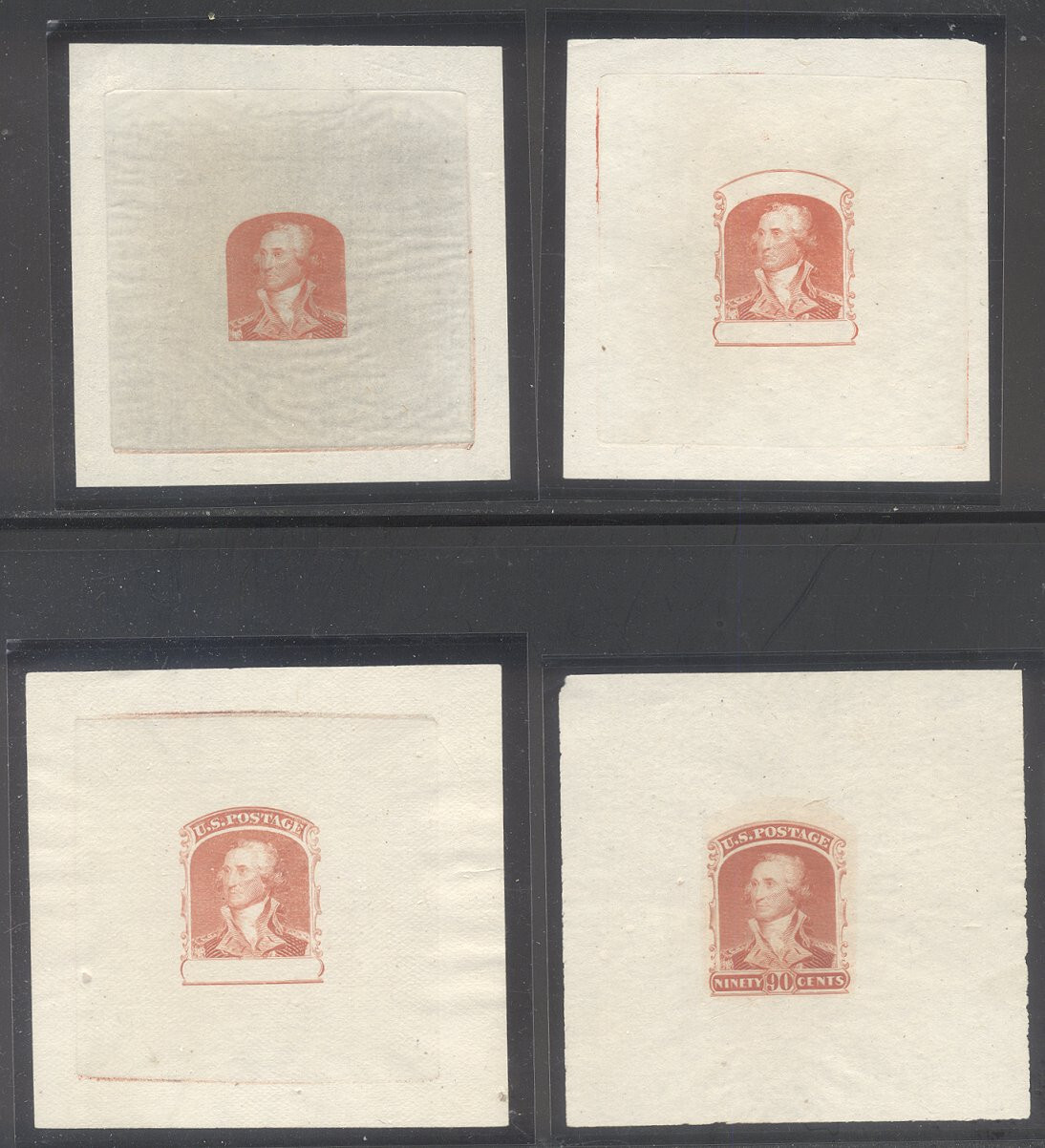 U.S. #72-E1-4 SCARCE Progressive Essay Set - 90c Wasington, Dark Carmine