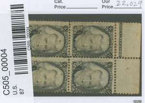 US stamp scott #87 Mint block of 4 w/imprint - Extremely scarce