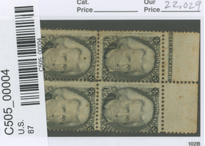 US scott #87 E grill, Mint block of 4 w/imprint - Extremely scarce
