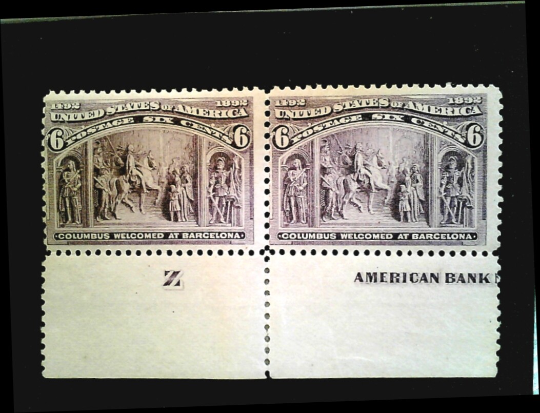 US Sc#235 MNH OG F-VF Pair - beautiful hard to find pair with perfect original gum on both stamps! (hinge on selvage for perf support only)