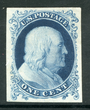 USA 1851 Franklin 1¢ Blue Sc #40P1 (?) Mint G38