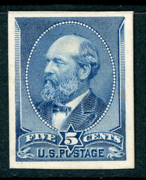USA 1887 Garfield 5¢ Indigo Card Proof Sc #216p4 Mint G225
