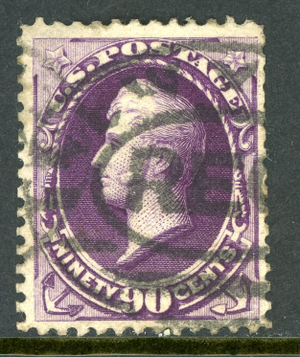 USA 1888 Perry 90¢ Purple ABNC Scott #218 VFU R21