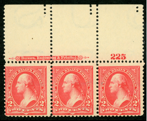 USA 1895 Washington 2¢ Carmine Scott # 267 Inscription Plate Number MNH J35
