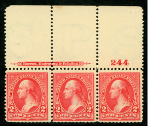 USA 1895 Washington 2¢ Carmine Scott # 267 Inscription Plate Number MNH J37
