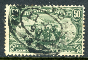 USA 1898 Trans Mississippi 50¢ Sage Green Scott #291 VFU R55