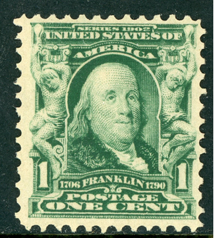 USA 1902 Franklin 1¢ Green Scott #300 MNH J52
